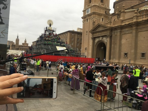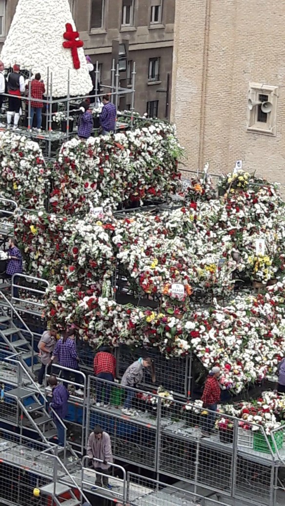 Nuestra cesta quedaba en lo alto, bien cerca de la Virgen del Pilar, para que nos dé suerte y fuerza hasta el año que viene; también para que nos ayude a cumplir sueños y deseos.
