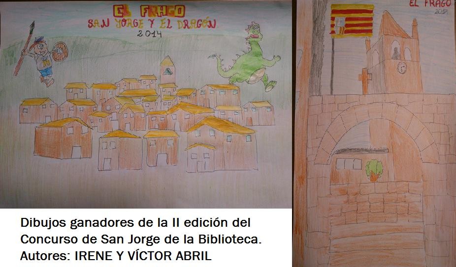 Pero la celebración no acaba aquí. Aunque estemos muy cansados, por la noche hay más… La Biblioteca abrirá fuera de su horario habitual para entregar los premios a los jóvenes escritores y pintores de El Frago. Sí, sí, vuelve el Concurso de redacción y dibujo de San Jorge, organizado por la Biblioteca.